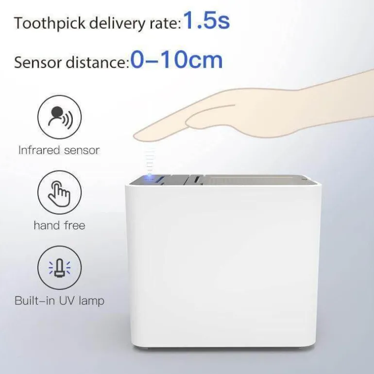 Entdecken Sie ultimativen Komfort und Hygiene mit unserem automatischen Zahnstocherspender, einem intelligenten Selbstbedienungs-Zahnstocherhalter mit fortschrittlicher Infrarot-Induktionstechnologie. Dieses innovative Gerät ermöglicht es Ihnen, Ihre Zahnstocher einfach hineinzulegen und mühelos einen zu entnehmen, ohne das Gerät berühren zu müssen. Dank seiner Benutzerfreundlichkeit kann er bis zu 200 Zahnstocher gleichzeitig ausgeben, sodass Sie in nur 1,5 Sekunden einen Zahnstocher entnehmen können.
