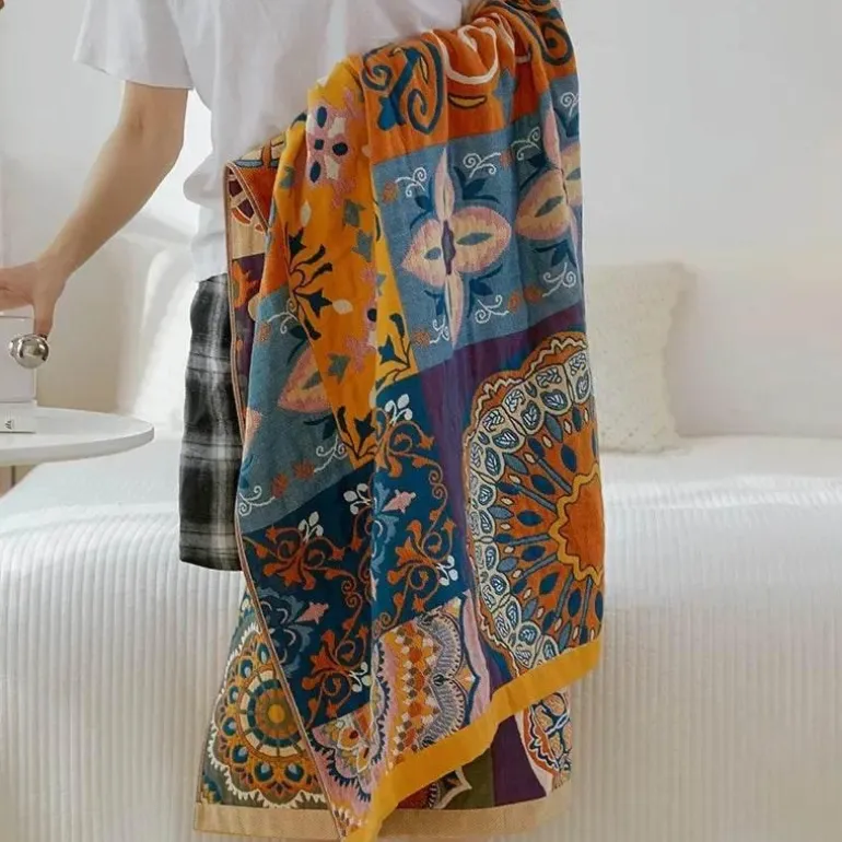 Entdecken Sie das Baumwollgaze-Badetuch, ein weiches und saugfähiges Tuch im Ethno-Stil, das Ihr Badeerlebnis verschönert. Dieses gestrickte Handtuch aus 100 % Baumwolle vereint Qualität mit außergewöhnlichem Komfort für den täglichen Gebrauch.