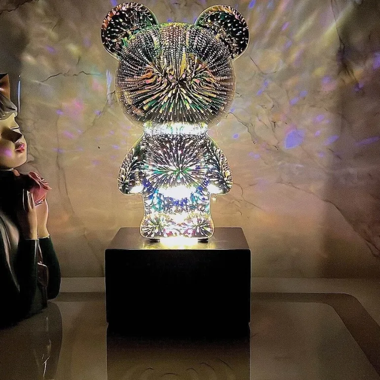 Erhellen Sie Ihren Raum mit der bezaubernden LED-Bären-Nachtlampe mit bezauberndem Feuerwerksmotiv. Dieses dekorative Nachtlicht ist perfekt für jeden Raum und verbreitet ein sanftes, warmes Licht, das eine gemütliche Atmosphäre zum Entspannen schafft. Der sanfte Abklingeffekt trägt zu seinem Charme bei und schafft eine einladende Atmosphäre, die ruhige Träume und erholsame Nächte fördert.