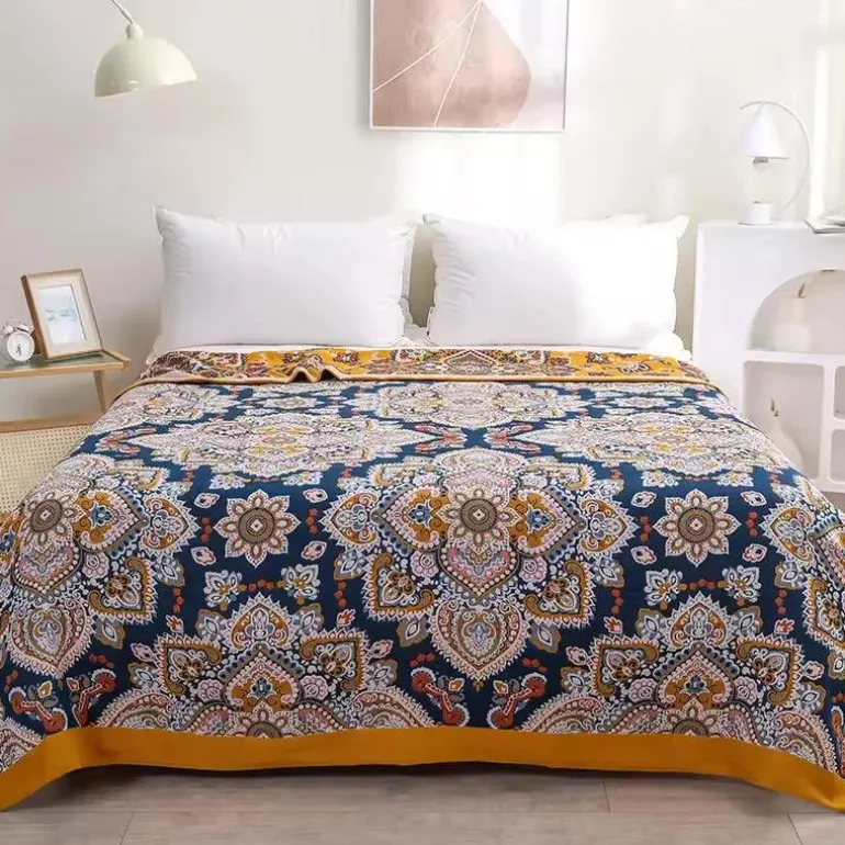 Die Pflege dieser eleganten Decke ist kinderleicht: Waschen Sie sie einfach mit der Hand, um ihre leuchtenden Farben und ihre Qualität zu erhalten. Ob Sie es sich drinnen mit einem spannenden Buch gemütlich machen oder draußen die Sonne genießen – diese Baumwollgaze-Decke ist ein Must-have für alle, die Komfort und Stil gleichermaßen schätzen. Werten Sie Ihren Wohnraum mit diesem vielseitigen Stück auf, das Eleganz und Alltagstauglichkeit mühelos vereint. Entdecken Sie praktische Lösungen für Ihr Zuhause bei Decor .