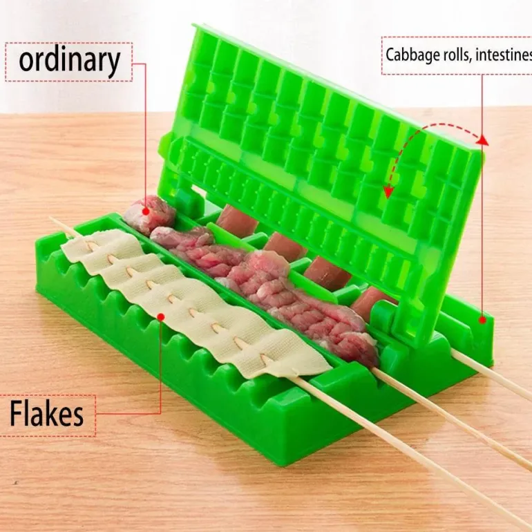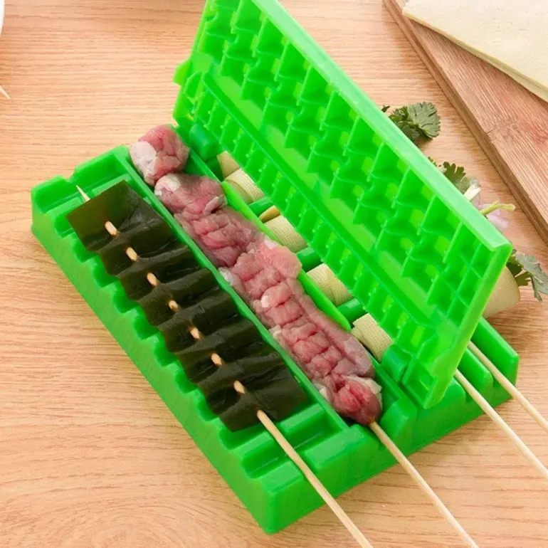 Dieses multifunktionale Grillzubehör ist praktisch und erleichtert die Zubereitung von dünnen Scheiben, Fleischspießen und Gemüseröllchen. Es sorgt für eine köstliche Mischung aus Texturen und Aromen. Dank seiner kompakten Größe ist es leicht zu handhaben und bietet alle wichtigen Utensilien für ein gelungenes Grillerlebnis.
