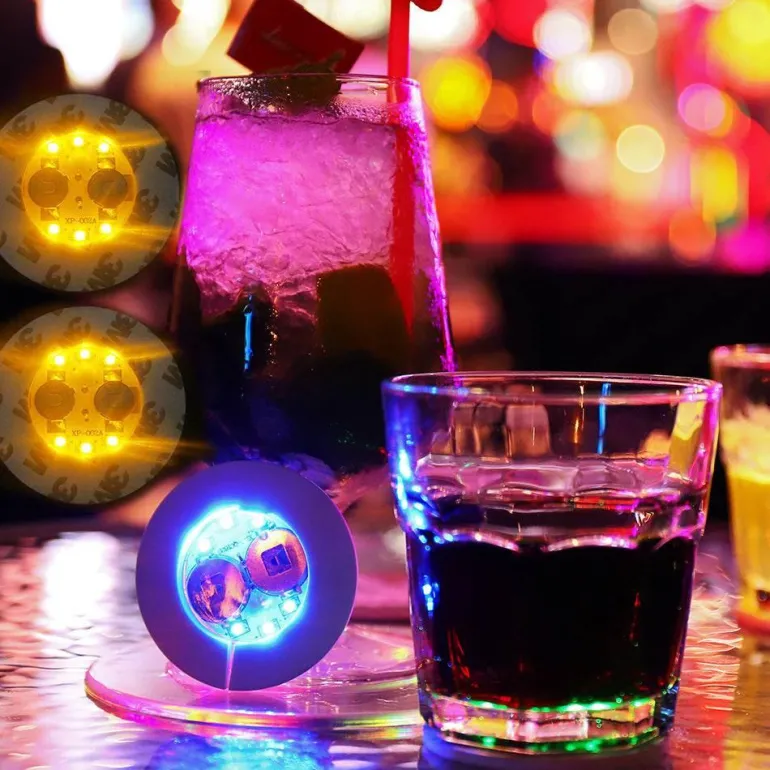 Jeder Untersetzer ist mit vier ultrahellen LED-Leuchten ausgestattet, die transparente Behälter wie Weinflaschen, Weingläser und Sektflöten beleuchten und so einen atemberaubenden visuellen Effekt erzeugen. Dank der beeindruckenden Akkulaufzeit von über 24 Stunden können diese Untersetzer die Party die ganze Nacht über ohne Unterbrechung weiterlaufen lassen.