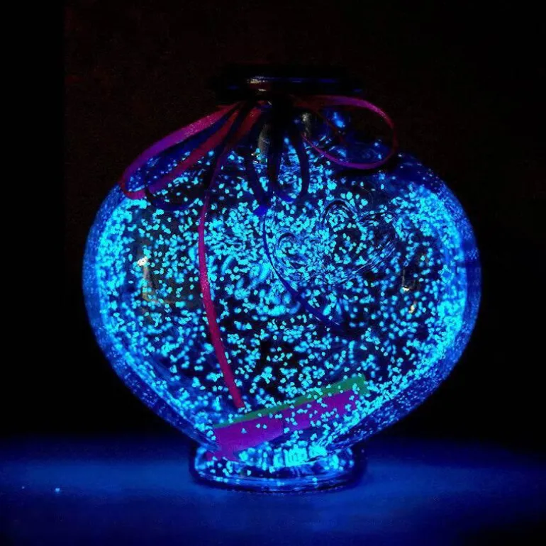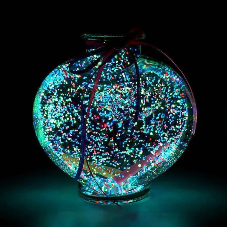 Verwandeln Sie Ihren Wohnraum mit der bezaubernden leuchtenden Wunschflasche, einem bezaubernden Dekorationsstück, das die Magie des Lichts mit durchdachtem Design verbindet. Diese Wunschflasche aus hochwertigem Glas und zartem Papier ist in drei einzigartigen Ausführungen erhältlich: der Liebesflasche (14 x 14 x 9 cm), der Sternflasche (15,5 x 15,5 x 9,2 cm) und der flachen Kugelflasche (19 x 18 x 13 cm).