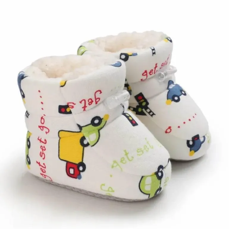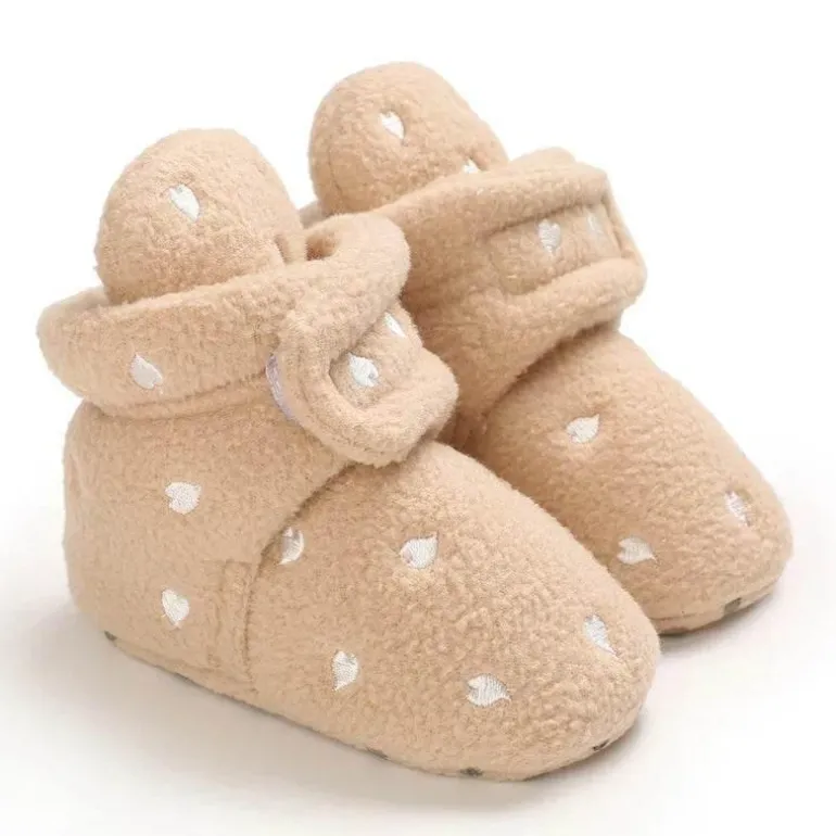 Diese Winterstiefel für Babys sind so konzipiert, dass sie die Füße Ihres Babys in den kalten Monaten warm und geschützt halten. Sie bestehen aus weichem, isolierendem Baumwollstoff und verfügen über einen sicheren und bequemen Gummibandverschluss, der Ihrem Baby bei Winterausflügen einen bequemen Sitz garantiert. Das kuschelige Material wärmt sanft und macht sie ideal für kühle Tage im Freien.