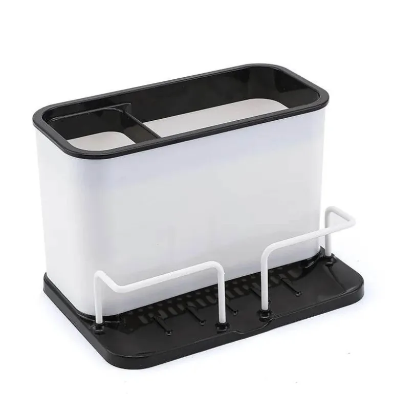 Dieses robuste Gestell aus hochwertigem Polypropylen ist für den täglichen Gebrauch konzipiert und in den eleganten Farben Schwarz und Grau erhältlich, wodurch es zu jeder Kücheneinrichtung passt. Das durchdachte Doppelgitter bietet ausreichend Platz für Besteck, Küchenutensilien und Schwämme, sodass diese leicht zugänglich sind und effizient trocknen.