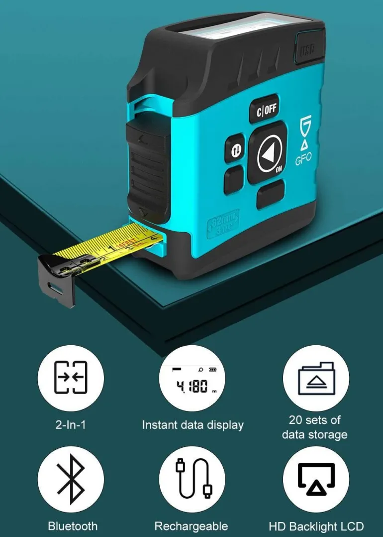Entdecken Sie die Leichtigkeit präziser Messungen mit unserem Bluetooth-Maßband, einem intelligenten und effizienten digitalen Messwerkzeug für einfache Bedienung. Schalten Sie es einfach ein und drücken Sie die Bedientaste, um Entfernungen schnell und präzise zu messen. Das kompakte Design liegt angenehm in der Hand und ermöglicht eine mühelose Handhabung. Das gut lesbare LCD-Display sorgt für klare Sicht, selbst bei schlechten Lichtverhältnissen oder Regen. Dieses vielseitige Werkzeug eignet sich ideal für vielfältige Anwendungen, darunter Heimwerkerprojekte, Bauarbeiten und Heimdekoration.