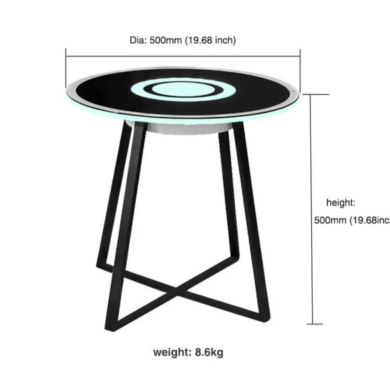Crafted from durable materials, the table combines a sleek iron frame with a sophisticated glass surface, adding a touch of elegance to your living space. The table measures approximately 500 x 500 x 500 mm (19.69 x 19.69 x 19.69 in) and has a weight of 9 kg (19.84 lb). Additionally, it is waterproof, ensuring easy maintenance and longevity.