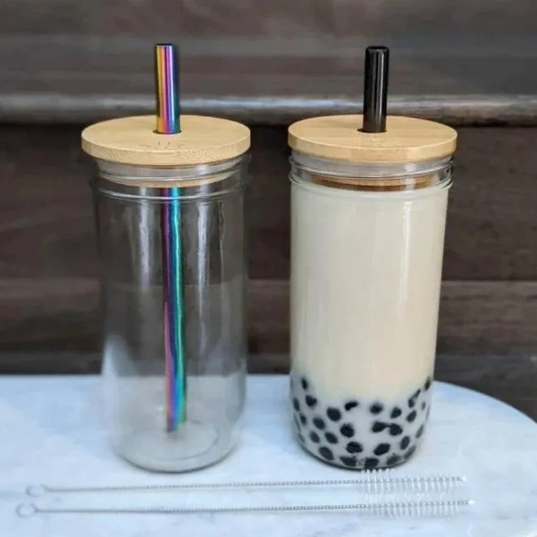Verwandeln Sie Ihr Getränkeerlebnis mit unserem umweltfreundlichen Glasbecher, sorgfältig gefertigt aus hochwertigem, bleifreiem Glas. Mit einem Deckel aus natürlichem Bambus und einem robusten Strohhalm aus Edelstahl eignet sich dieser stilvolle Becher ideal für den Genuss einer Vielzahl von Getränken, von Smoothies bis hin zu Cocktails, und ist gleichzeitig eine nachhaltige Wahl.