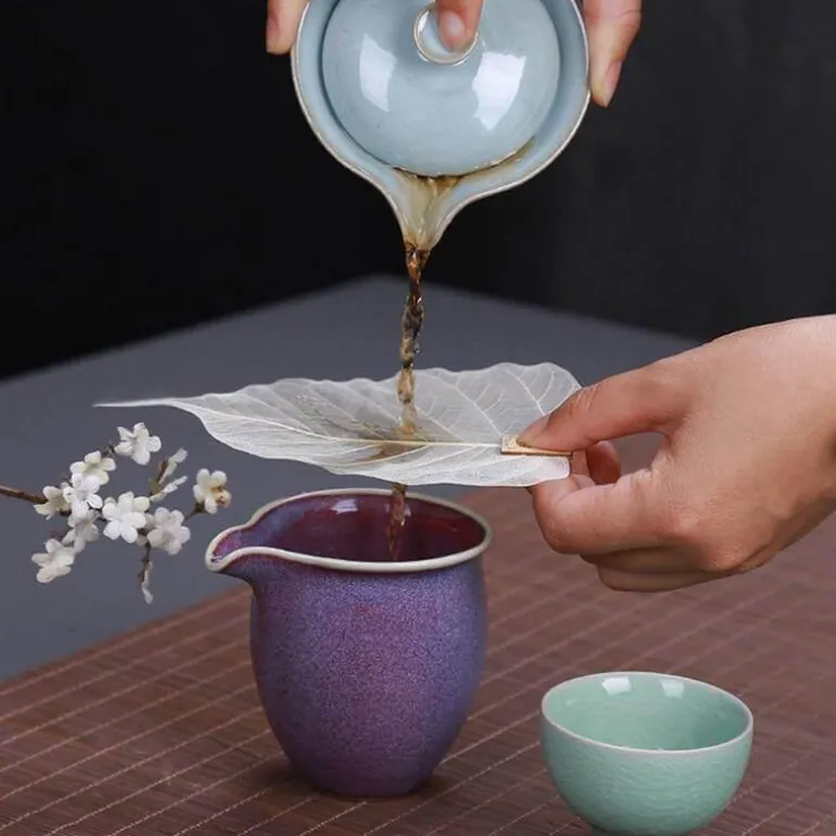 Wir präsentieren das innovative Tee-Ei aus reinen Bodhi-Blättern – für Teeliebhaber, die Wert auf Funktionalität und Ästhetik legen. Dieser kreative Filter hebt die feinen Blattadern hervor und bietet eine natürliche Textur, die Ihr Teeerlebnis veredelt. Die einzigartigen Adern, die dem natürlichen Wachstumsmuster des Blattes folgen, wirken wie ein natürlicher Filter und verkörpern die Eleganz orientalischen Designs.