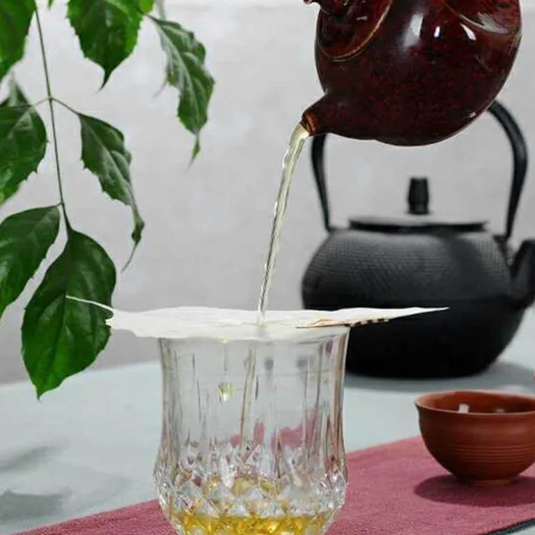 Obwohl die Bodhi-Blätter robust genug zum Aufgießen sind, ist ein schonender Umgang mit ihnen wichtig. Vermeiden Sie es, die Blätter zu zerreißen oder zu durchstechen. Mit einem Gewicht von ca. 0,01 kg und kompakten Abmessungen von 15,5 x 13 x 0,1 cm (6,10 x 5,12 x 0,04 Zoll) eignet sich dieser Teefilter perfekt für den Heimgebrauch und das Aufbrühen unterwegs.