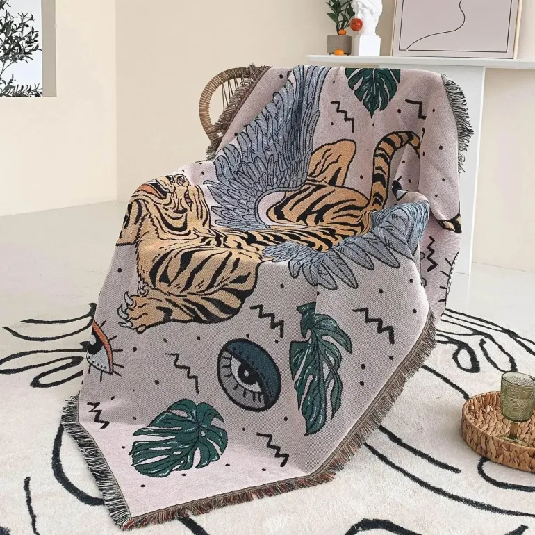 Wir präsentieren die Bohemian Outdoor Decke, einen luxuriösen Gobelin-Teppich, perfekt für Outdoor-Fans, die Stil und Komfort schätzen. Hergestellt aus einer hochwertigen Polyester-Baumwoll-Mischung, wertet diese Decke Ihre Campingausflüge, Picknicks oder sogar Ihre Wohnkultur mit ihrem raffinierten Design auf.