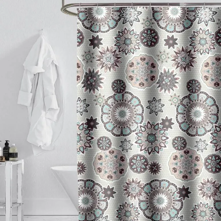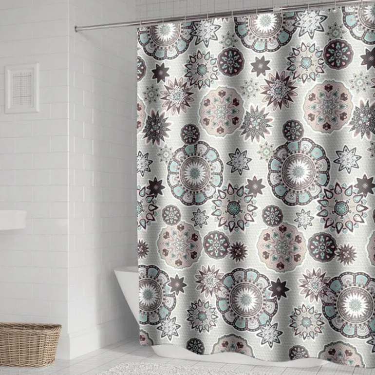 Verschönern Sie Ihr Badezimmer mit diesem farbenfrohen Duschvorhang im Bohemian-Blumenmuster, der Ihrem Raum eine einladende Note verleiht. Als flexible Alternative zu herkömmlichen starren Vorhängen sorgt dieser Vorhang für mehr Privatsphäre und ist gleichzeitig preisgünstig. Sein markantes, baumartiges Chevron-Muster verkörpert den Charme des Bohemian-Stils und macht ihn zu einem bezaubernden Blickfang in Ihrer Einrichtung.