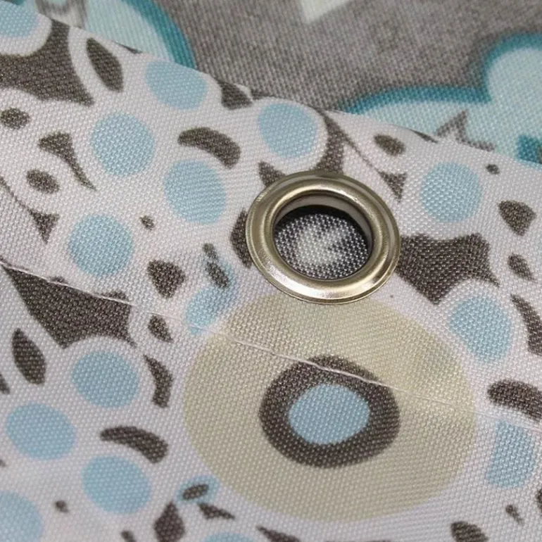 Dieser Duschvorhang verfügt über praktische Knopflochöffnungen zum einfachen Aufhängen und zeigt einen einseitigen Druck, der Ihrem Badezimmer Leben einhaucht.
