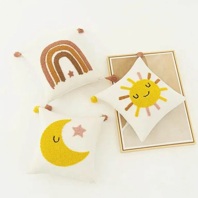 Verleihen Sie Ihrem Zuhause einen Hauch von Bohème-Charme mit dem Kissenbezug „Rainbow Moon Embroidery“ – die ideale Wahl für praktische Wohndekoration. Entdecken Sie mehr bei Decor .
