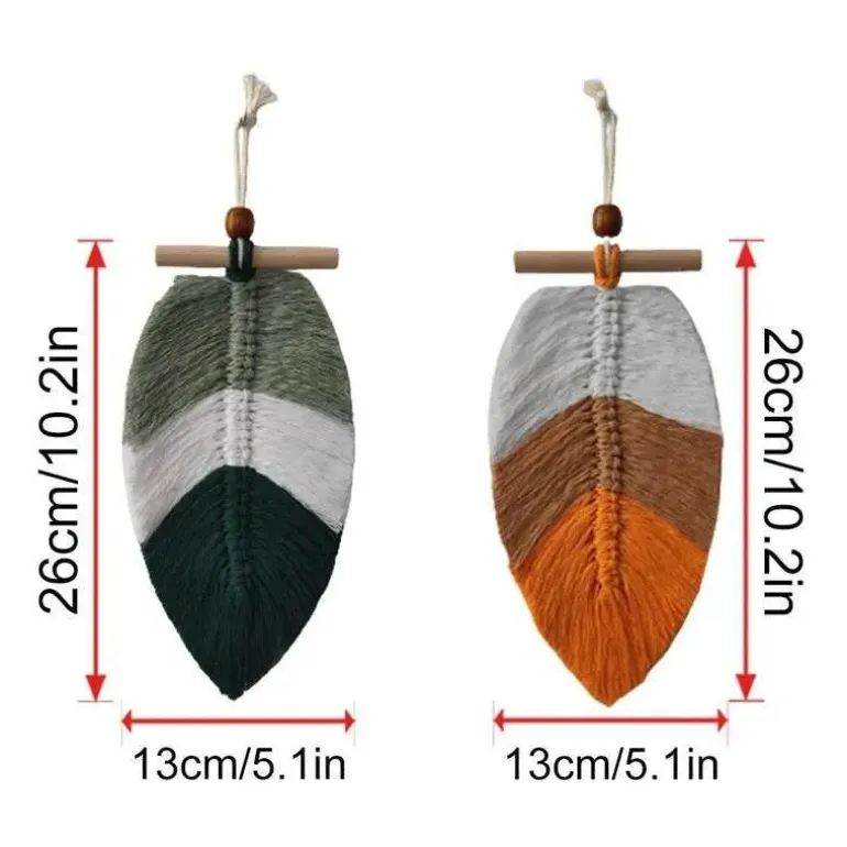Das Set aus zwei bunten gewebten Blättern eignet sich als Wanddekoration, als Tischdekoration oder als kreative Ergänzung zu größeren Dekorationsarrangements. Ihr charmantes Design verleiht Ihrem Interieur ein einzigartiges und künstlerisches Flair – ideal für alle, die den Bohème-Stil schätzen.
