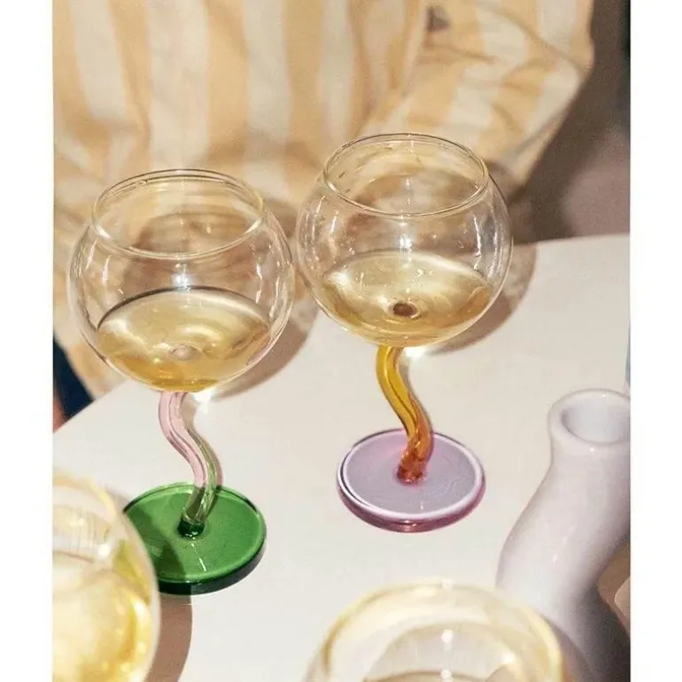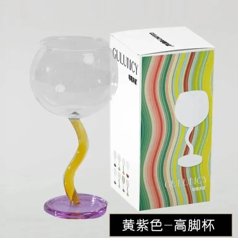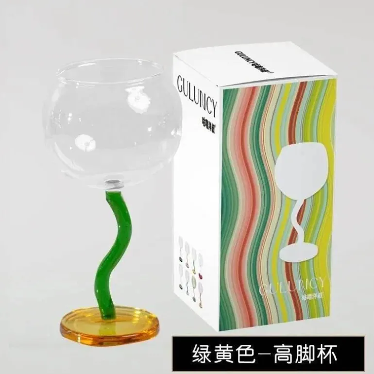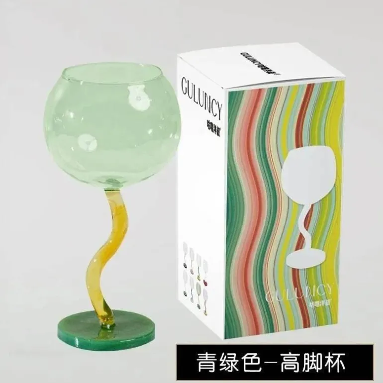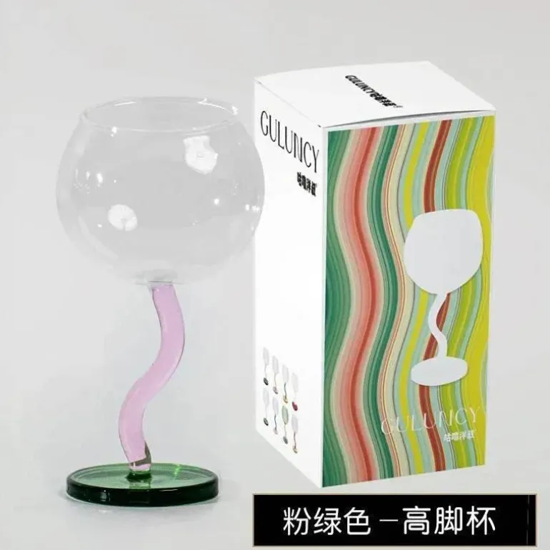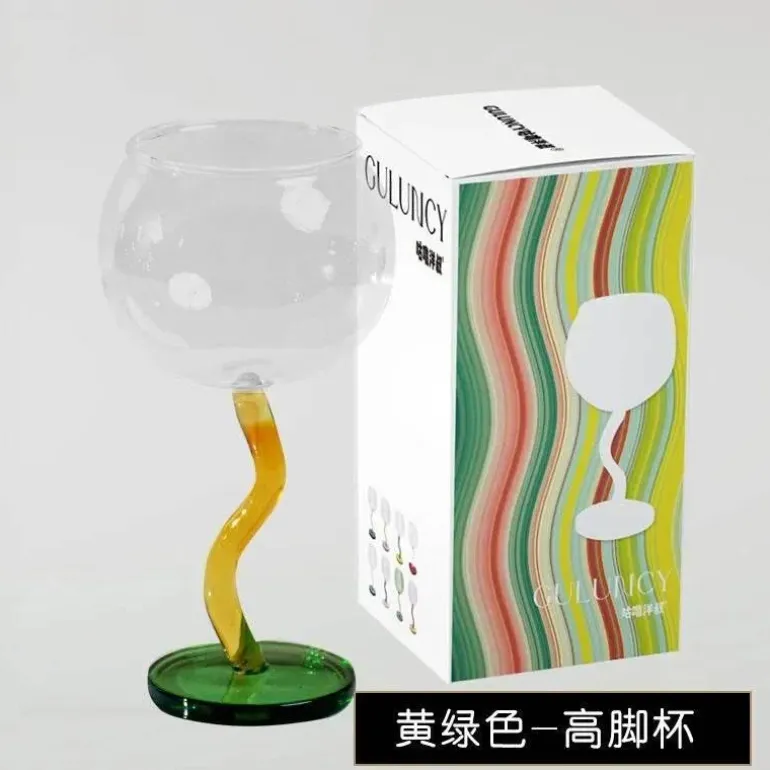 Entdecken Sie den runden Weinkelch mit gedrehtem Stiel, ein exquisit gefertigtes 300-ml-Glas (10 oz), das Kreativität und Farbe mit Alltagstauglichkeit verbindet. Dieser markante Kelch aus hochwertigem Glas ist eine elegante Ergänzung für Ihr Zuhause und passt zu jedem Anlass.