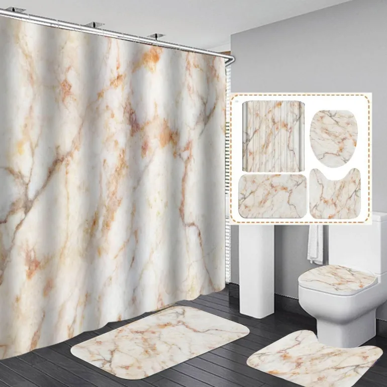 Verwandeln Sie Ihr Badezimmer mit dem Duschvorhang-Set Calcutta Oro – eine perfekte Kombination aus Stil und Funktionalität, die Ihren Raum verschönert. Dieser elegante Duschvorhang präsentiert sich mit einem raffinierten Marmormuster und verleiht Ihrem Alltag einen Hauch von Luxus. Hergestellt aus langlebigen Materialien, wertet er nicht nur Ihre Einrichtung auf, sondern bietet auch effektive Wasserbeständigkeit und sorgt so für ein frisches und sauberes Raumklima.