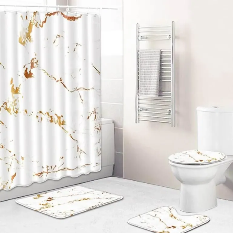 Die raffinierte Farbpalette passt zu verschiedenen Badezimmerthemen und macht dieses Set zu einer vielseitigen Wahl für jedes Zuhause. Jeder Vorhang ist einfach aufzuhängen und ermöglicht so eine unkomplizierte Installation. Genießen Sie die Ästhetik eines wunderschön gestalteten Badezimmers und profitieren Sie gleichzeitig vom Komfort dieses Duschvorhang-Sets.