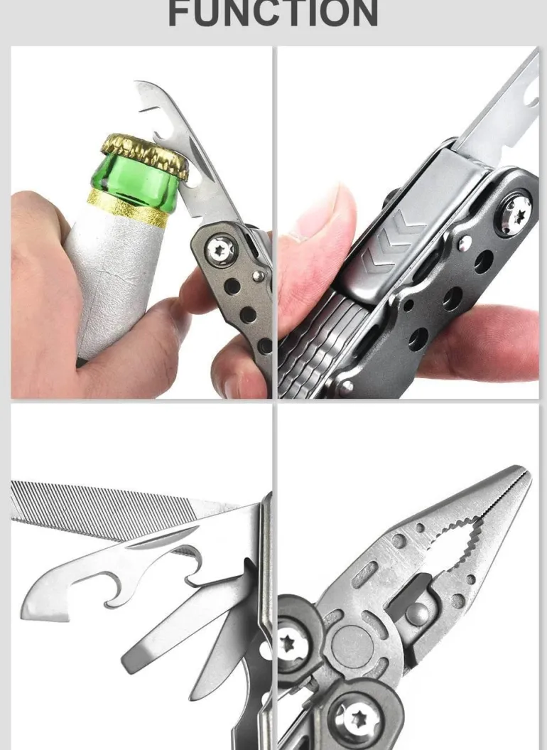 Im Paket enthalten ist eine tragbare Multitool-Drahtschneider-Campingzange, die Ihnen bei Ihrer nächsten Expedition zur Seite steht.