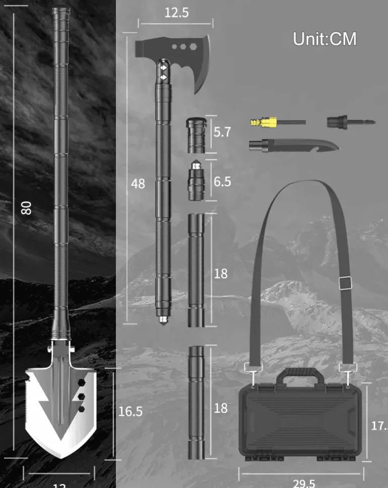 Dank seines leichten und kompakten Designs ist dieses Werkzeugset leicht zu tragen und sorgt dafür, dass Sie auf alles vorbereitet sind, was die Natur zu bieten hat, ohne sich durch zusätzliches Gewicht belasten zu müssen. Dieses Set ist ideal für Outdoor-Enthusiasten und Abenteurer und bietet Ihnen in jeder Situation ein sicheres Gefühl.