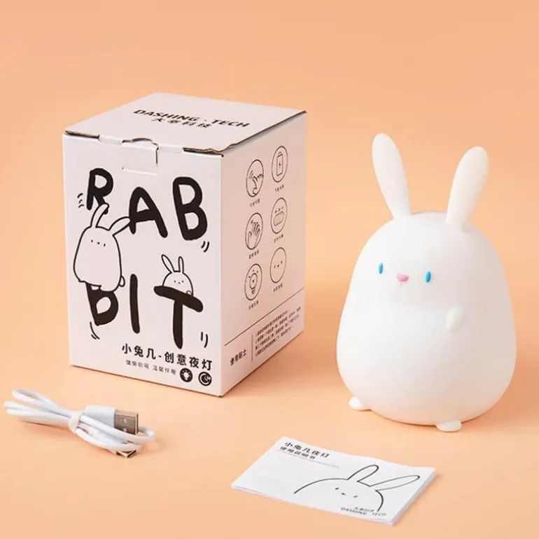 Erhellen Sie das Zimmer Ihres Kindes mit diesem bezaubernden Cartoon-Kaninchen-Nachtlicht aus Silikon. Es sorgt für eine fröhliche Atmosphäre und spendet die ganze Nacht über ein beruhigendes Licht. Mit nur einer sanften Berührung können Sie den Raum ganz einfach beleuchten. Es ist die perfekte Ergänzung für Kinderzimmer oder gemütliche Spielbereiche.