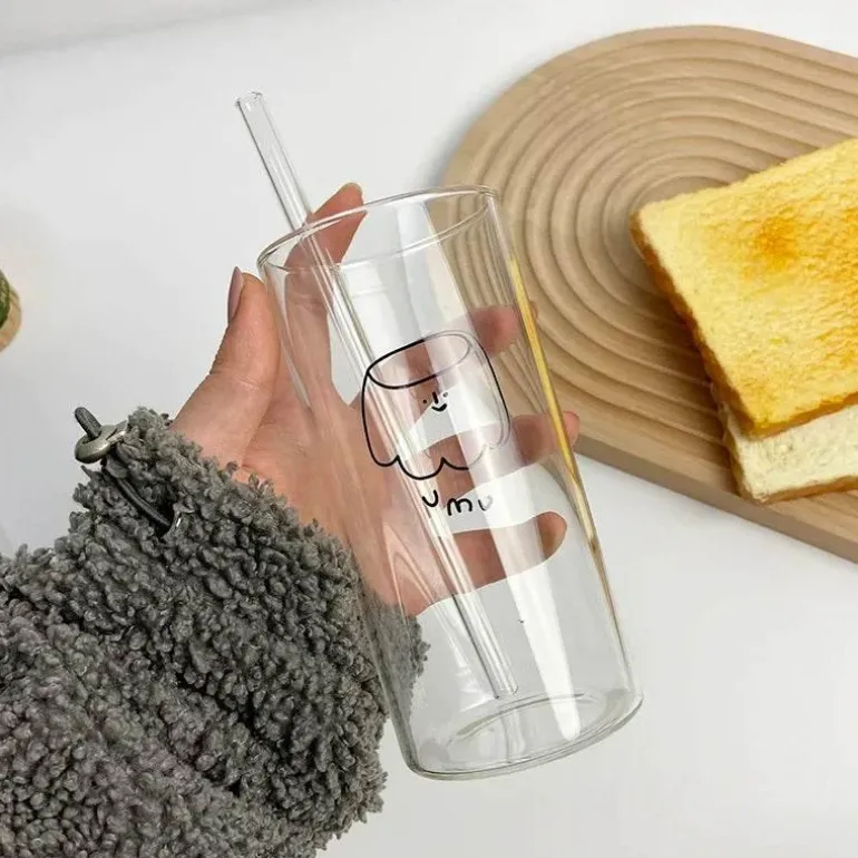 Verschönern Sie Ihre Kücheneinrichtung und steigern Sie Ihr Trinkerlebnis mit diesem vielseitigen Glasbecher. Er vereint Stil und Funktionalität und sorgt für einen angenehmen Schluck. Erweitern Sie Ihre Trinkgefäßsammlung mit dem Cartoon-Glasbecher mit Strohhalm um ein Stück, das Eleganz und Funktionalität vereint.
