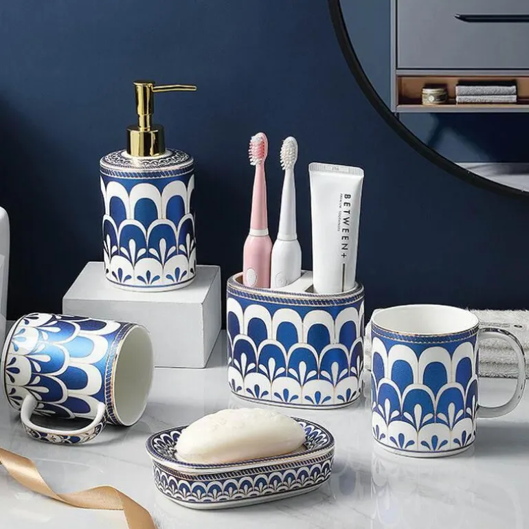 Crafted from high-quality ceramic, each piece is built for durability and ease of maintenance, while the striking feather pattern introduces a touch of refinement to your décor. Enhance your daily routine with this charming bathroom set that embodies both aesthetics and practicality. Explore practical solutions for your home at Decor .