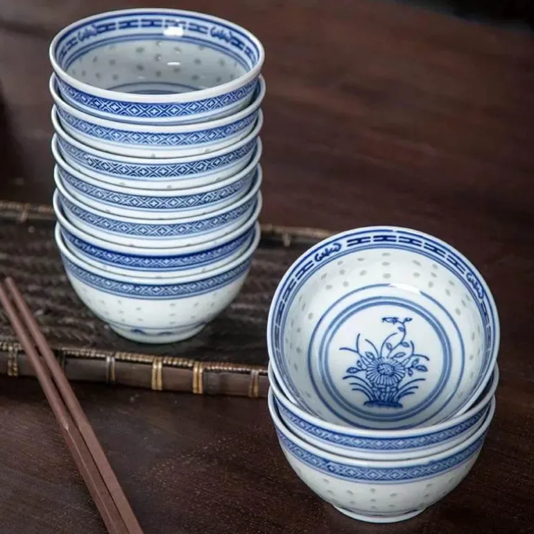 Erleben Sie die Eleganz und Tradition unserer exquisiten chinesischen Orchideen-Drachenschale aus hochwertigem Porzellanemaille. Diese wunderschön gestaltete Dessert- und Reisschale präsentiert ein klassisches blau-weißes Muster, das Ihrem Esstisch Charme und Raffinesse verleiht.