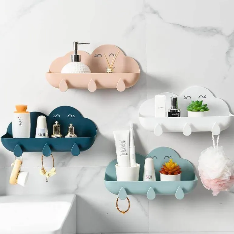 Der Organizer verfügt über ein wolkenförmiges Design mit Abflussfunktion und bietet hervorragende Tragkraft. Ihre Gegenstände bleiben sicher und ordentlich verstaut. Dank der starken Saugkraft haftet er fest an der Wand, sodass Sie sich keine Sorgen machen müssen, dass er herunterfällt.