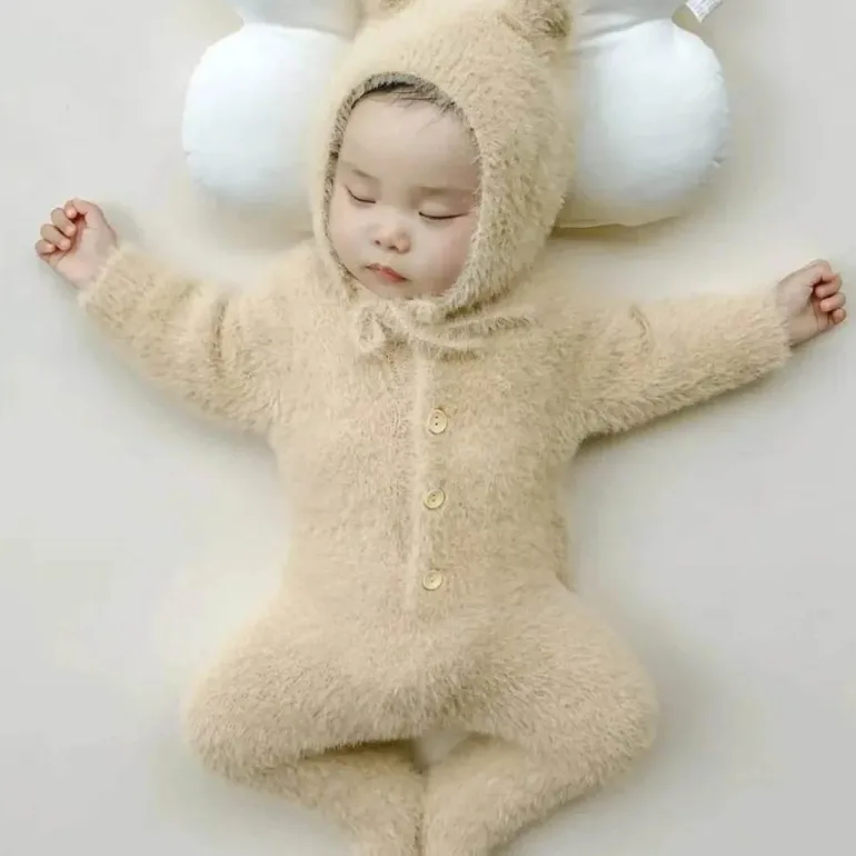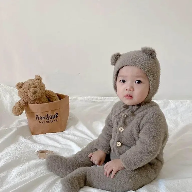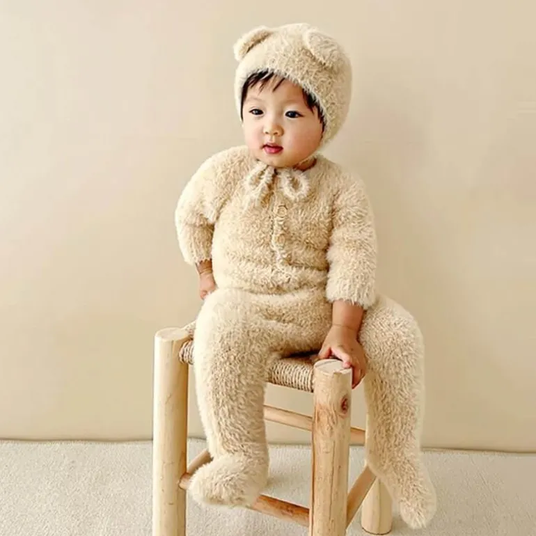 Jeder Kauf beinhaltet einen Cozy Bear Plüsch-Overall für Neugeborene, der eine wunderbare Mischung aus Komfort und Stil für die Garderobe Ihres Kleinen bietet.