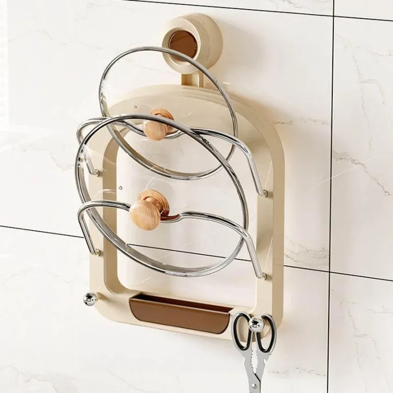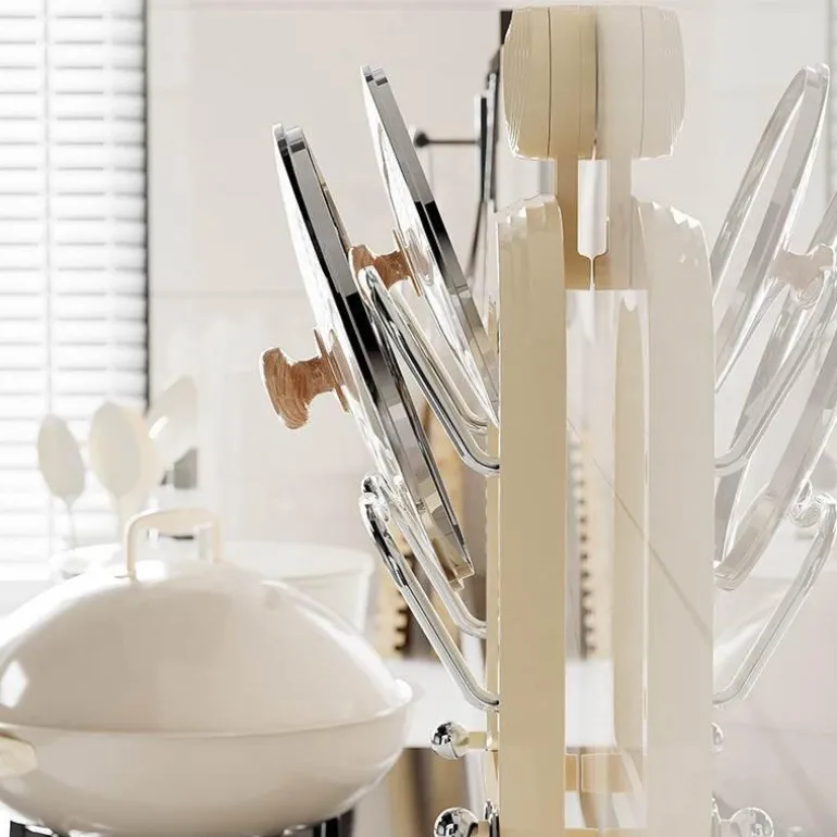 Dieser Wandorganizer ist perfekt für moderne Küchen konzipiert und kombiniert eine elegante zweistufige Ablage für Topf- und Pfannendeckel mit einem integrierten Utensilienkorb. Diese einzigartige Funktion sorgt für eine trockene und ordentliche Arbeitsfläche. Mit polierten Edelstahlakzenten verleiht die stromlinienförmige Struktur jedem minimalistischen Raum eine raffinierte Note und verbessert sowohl Funktionalität als auch Ästhetik.