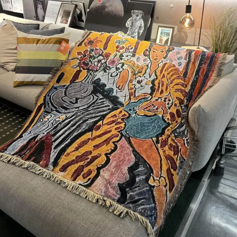 Erleben Sie den raffinierten Charme nordischen Designs mit unserem aufwendig gefertigten Sofabezug, der eine elegante Frauendarstellung zeigt. Hergestellt aus einer hochwertigen Polyester-Baumwollmischung bietet diese Decke ein weiches, luxuriöses Gefühl und wertet Ihren Wohnraum optisch auf. Die fein gewebten Fäden bieten außergewöhnlichen Komfort und Vielseitigkeit, sodass sie auch als stilvolle Handtuchdecke für verschiedene Anlässe verwendet werden kann.