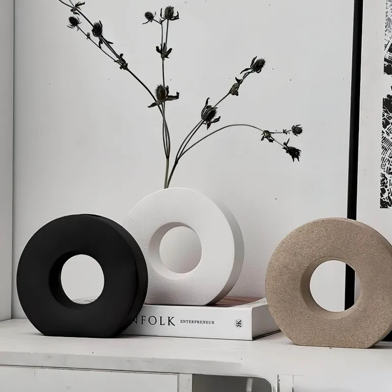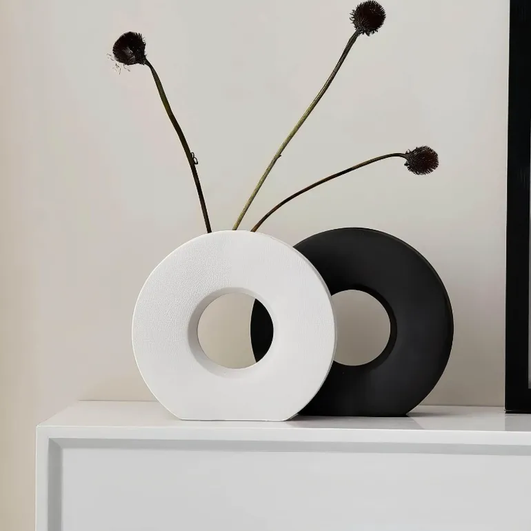 Entdecken Sie die perfekte Kombination aus modernem Design und raffinierter Eleganz mit dieser atemberaubenden Dekovase. Die sorgfältig gefertigte Vase ist ein Blickfang in jedem Raum und besticht durch ihre elegante, moderne Form, die Ihre Einrichtung mühelos aufwertet. Die glatte Oberfläche und die anmutige Silhouette machen die Vase zur idealen Wahl für die Präsentation frischer Blumen oder als markanter Akzent.