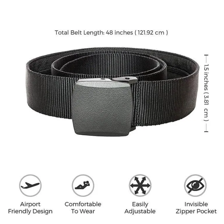 Schützen Sie Ihre Wertsachen auf Reisen mit dieser diskreten, diebstahlsicheren Reisegürteltasche. Sie ähnelt einem herkömmlichen Gürtel und verfügt über eine clever versteckte Reißverschlusstasche, in der Sie Bargeld, Münzen, Tickets oder andere kleine wichtige Gegenstände sicher verstauen können. Diese praktische Lösung sorgt dafür, dass Ihr Geld vor potenziellen Dieben verborgen bleibt und Sie auf Reisen beruhigt sein können.