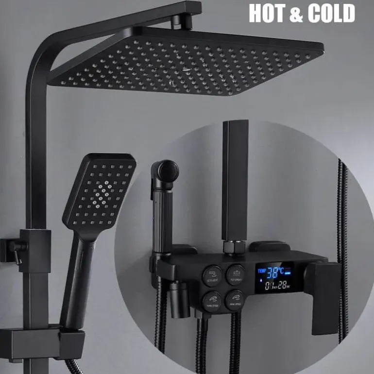 Transform your daily shower into a revitalizing retreat with the Hydro Lux LED Digital Rainfall Shower Set. This innovative shower system seamlessly blends advanced technology with a touch of luxury, creating a serene bathroom environment.