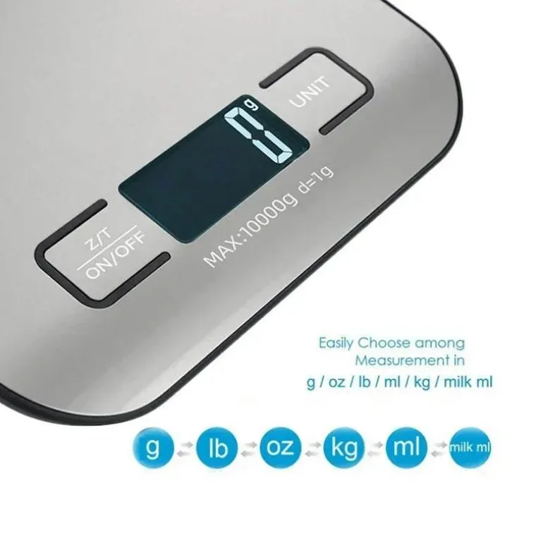 Diese langlebige und benutzerfreundliche Waage wird mit Batterien betrieben und kombiniert Edelstahl und ABS für eine lang anhaltende Leistung. Ob Hobbykoch oder Profikoch – diese Waage ist das perfekte Werkzeug, um Ihre kulinarischen Kreationen zu verfeinern.