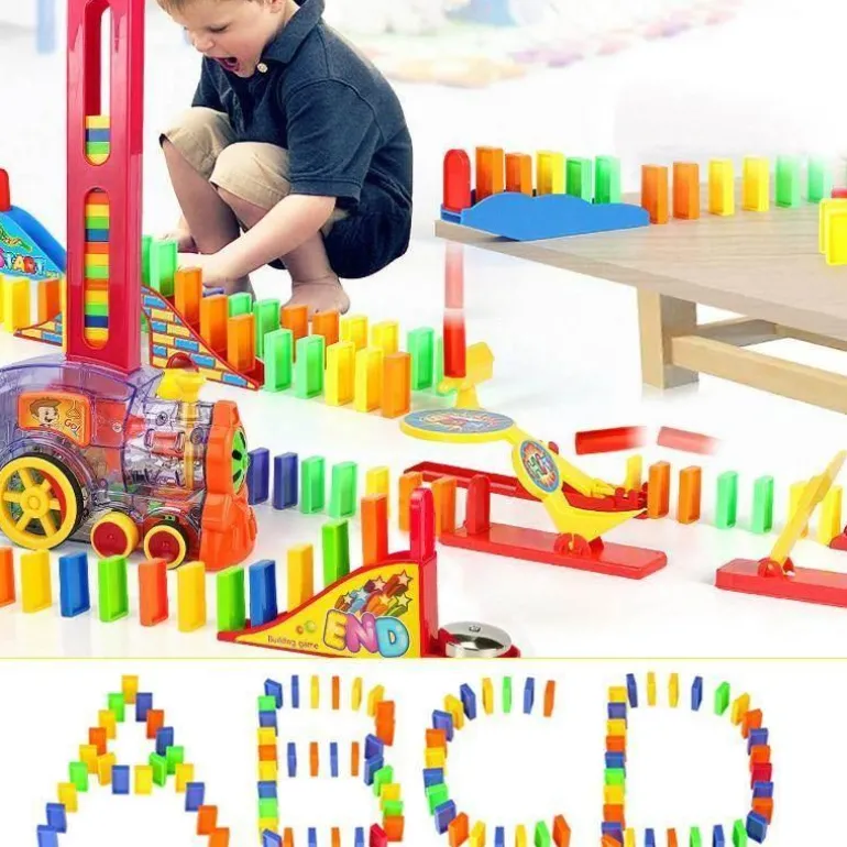 Die Bedienung des Dominostein-Spielzeugs ist kinderleicht: Füllen Sie die Kartusche mit Dominosteinen, starten Sie den Zug und sehen Sie zu, wie er die Steine fachmännisch auslegt. Kinder können die Dominosteine dann anordnen und den Nervenkitzel genießen, sie umzuwerfen. So entstehen endlose Möglichkeiten für fantasievolle Abenteuer und Spaß.