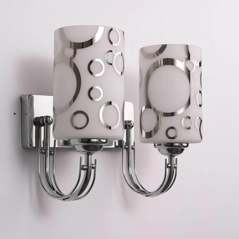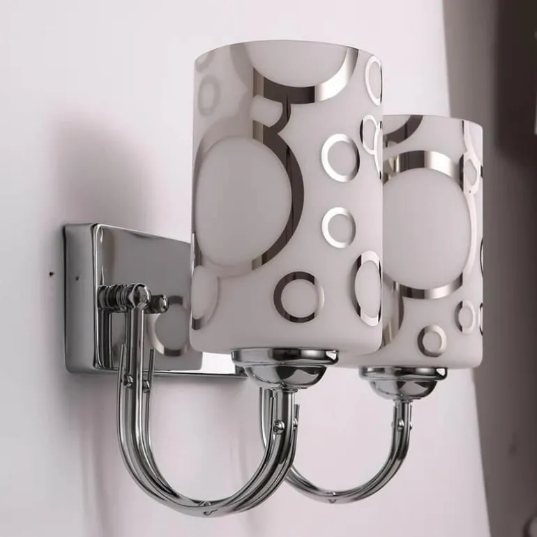 Diese kompakte Wandleuchte aus robustem Glas und Eisen vereint Eleganz und langlebige Qualität. Die verchromte Fassung verleiht ihr einen edlen Touch und passt zu vielen Einrichtungsstilen.