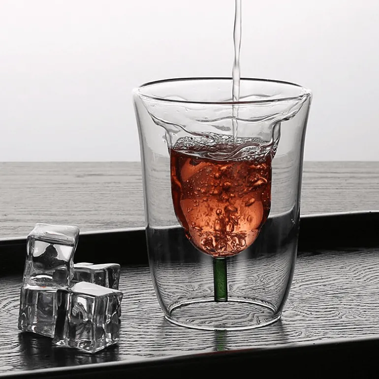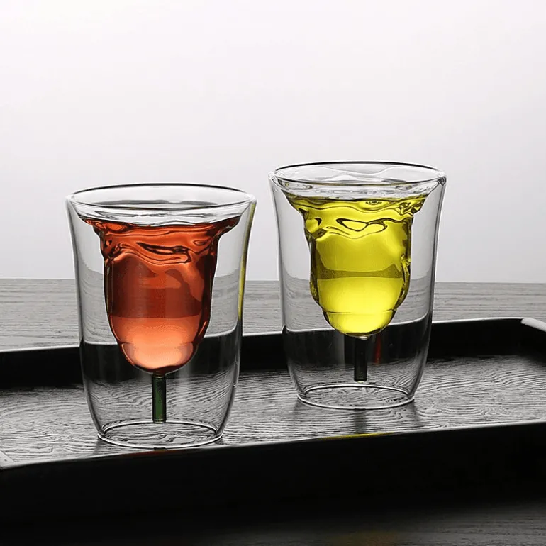 Veredeln Sie Ihr Getränkeerlebnis mit unserem doppelwandigen Trinkglas mit Blumenmuster. Dieses leichte Glas ist perfekt für eine Vielzahl von Getränken geeignet, von Wein und Spirituosen bis hin zu Kaffee, Tee, Cappuccino, Espresso und heißer Schokolade. Dank seiner innovativen doppelwandigen Struktur liegt es angenehm in der Hand, während Sie heiße Getränke genießen, und verhindert effektiv Kondensation beim Servieren gekühlter Getränke.