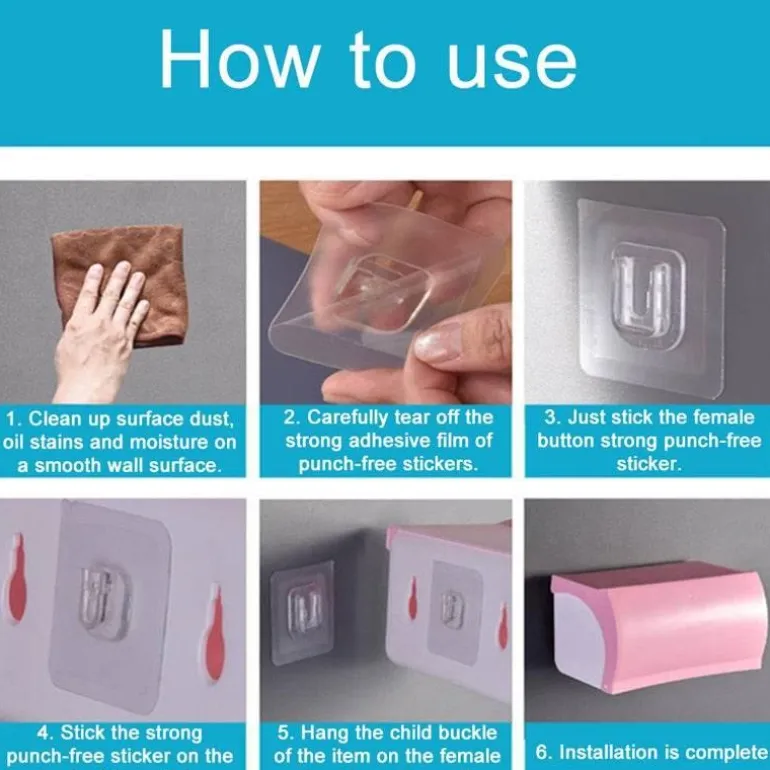 Der aus strapazierfähigem ABS-Material gefertigte, selbstklebende Wandhaken misst 6 x 6 cm (2,36 x 2,36 Zoll) und ist damit eine kompakte und dennoch funktionale Ergänzung für jeden Raum.