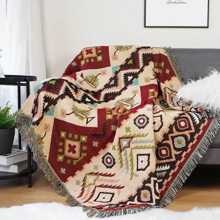Tauchen Sie ein in den Komfort der Geo Ethnic Throw Blanket, deren jeder Faden Wärme und Eleganz verkörpert. Verwandeln Sie Ihr Entspannungserlebnis mit diesem exquisiten Stück und verleihen Sie Ihrem Zuhause einen Hauch von internationalem Charme. Praktisch und schick – eine durchdachte Lösung zur Verschönerung Ihres Wohnraums. Entdecken Sie mehr bei Decor .