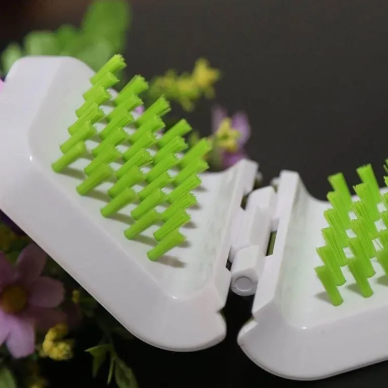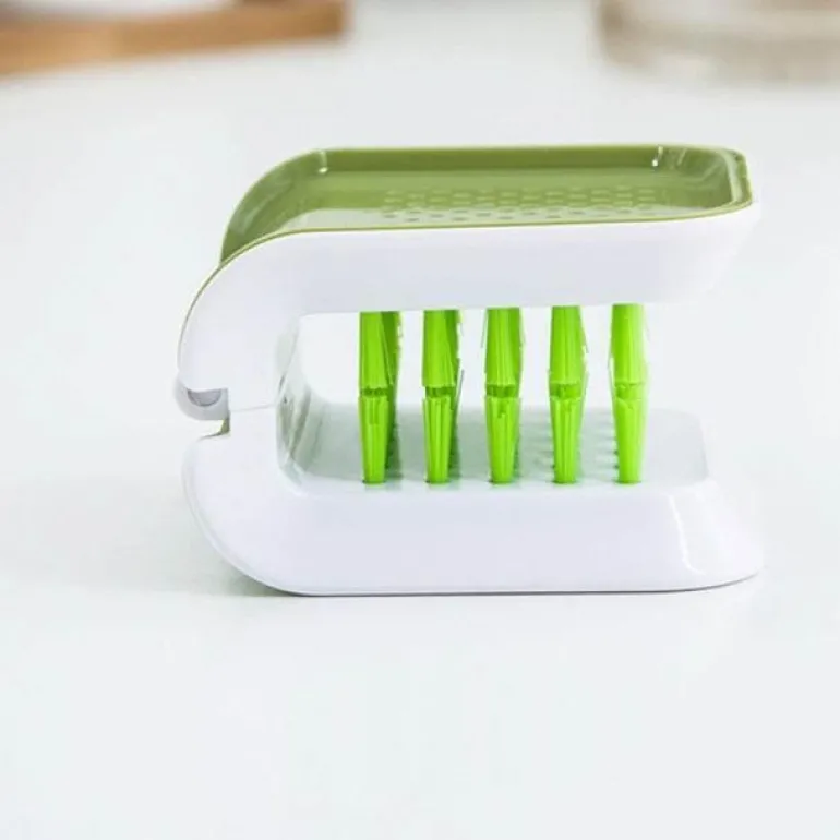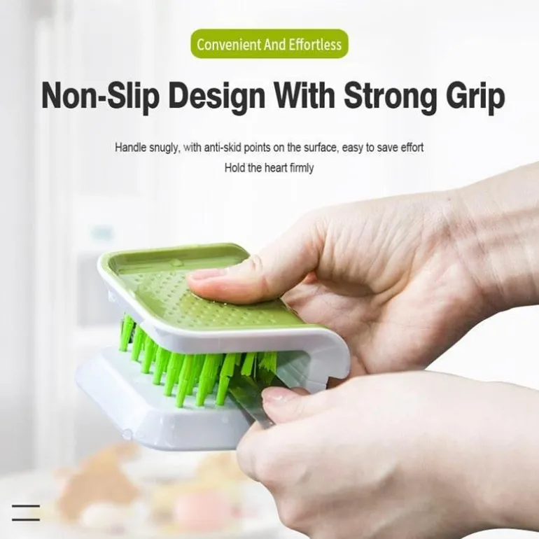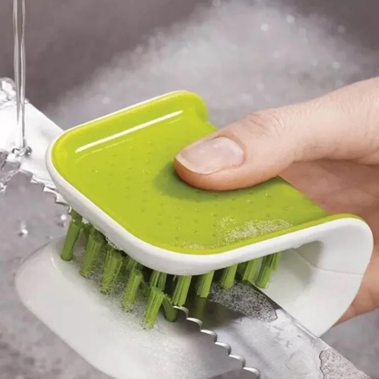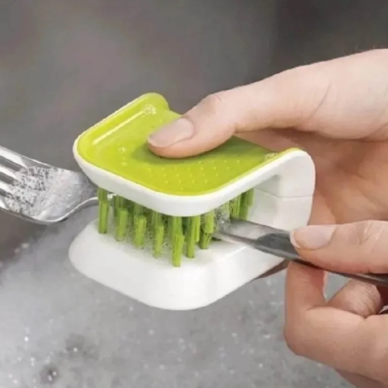 Entdecken Sie eine sicherere und effizientere Reinigungsmethode mit unserer rutschfesten doppelseitigen Reinigungsbürste, die speziell für scharfe Messer und Besteck entwickelt wurde. Dieses vielseitige Scheuerwerkzeug verfügt über robuste Doppelborsten, die mühelos hartnäckigen Schmutz und Fett von Töpfen, Pfannen, Gabeln, Messern und verschiedenen Küchenutensilien entfernen und so jedes Mal eine gründliche Reinigung gewährleisten.