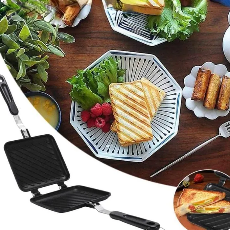 Im Lieferumfang enthalten ist eine doppelseitige Antihaft-Sandwich-Pfanne, die Ihr Sandwich-Erlebnis auf ein neues Niveau hebt. Ob schnelles Mittagessen oder herzhafter Snack – dieses praktische Küchenwerkzeug ist unverzichtbar für alle, die gerne frisch zubereitete Sandwiches genießen.