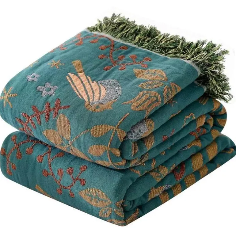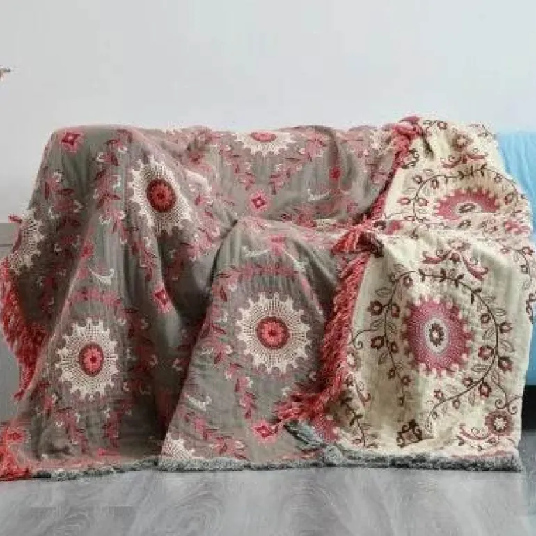 Erleben Sie Komfort und Vielseitigkeit mit unserer doppelseitigen japanischen Baumwolldecke. Sie verschönert Ihren Raum und spendet das ganze Jahr über Wärme. Diese Ganzjahresdecke aus 100 % hochwertiger japanischer Baumwolle eignet sich ideal als Reisedecke oder als gemütlicher Begleiter für Ihr Sofa.