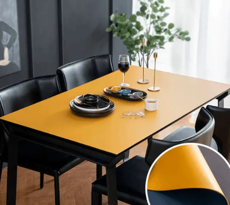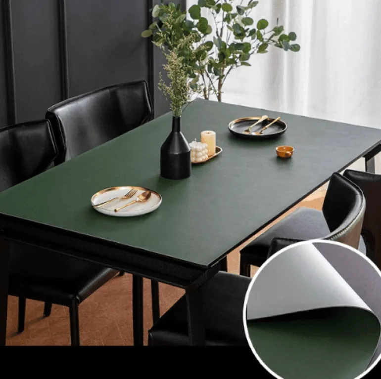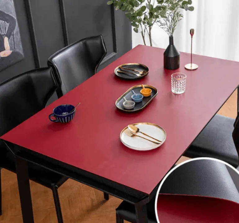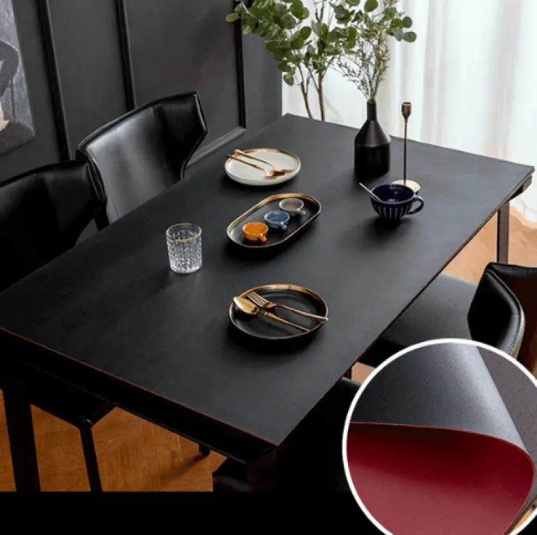 Die doppelseitige, wasserdichte Tischmatte aus Leder ist ein praktisches Tischaccessoire, das Ihr Essenserlebnis verschönert. Die Matte aus strapazierfähigem PVC ist effektiv fleckenabweisend und sorgt für eine schnelle Reinigung und schützt Ihren Tisch vor Kratzern. Dank ihrer robusten Konstruktion eignet sie sich für den täglichen Gebrauch, egal ob Sie ein gemütliches Familienessen genießen oder eine formelle Veranstaltung ausrichten.