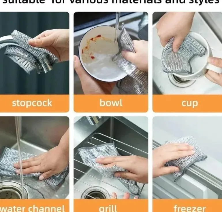 Diese Tücher eignen sich ideal zum Abwaschen von Geschirr, Töpfen und einer Reihe von Haushaltsgegenständen und sorgen jedes Mal für ein kratzfreies Ergebnis.