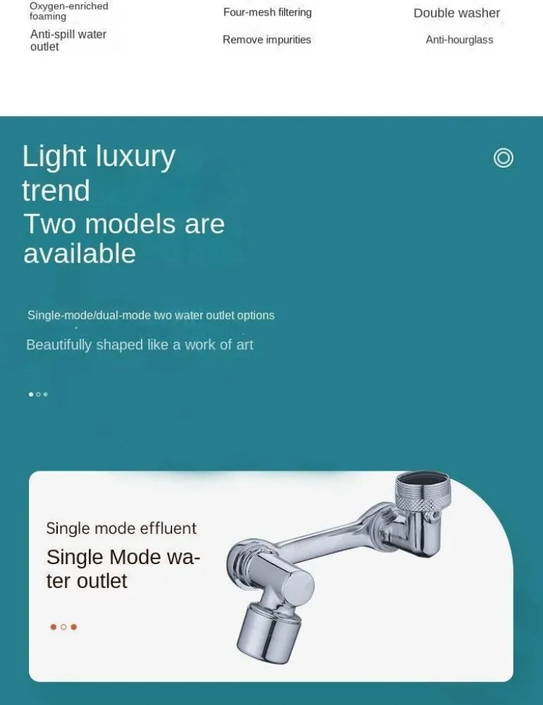 Dieser vielseitige Extender bietet zwei verschiedene Wassermodi: einen sanften Sprudelmodus, der sich perfekt für empfindliche Aufgaben eignet, und einen kombinierten Sprudel- und Duschmodus für anspruchsvollere Waschanforderungen. Die Installation ist problemlos und erfordert kein Werkzeug – prüfen Sie einfach die Kompatibilität Ihres Wasserhahns mit der Produktgröße, setzen Sie den Auslauf ein und befestigen Sie die Halterung durch Drehen im Uhrzeigersinn.