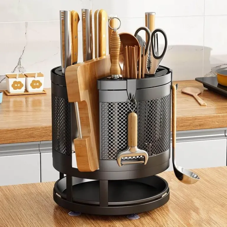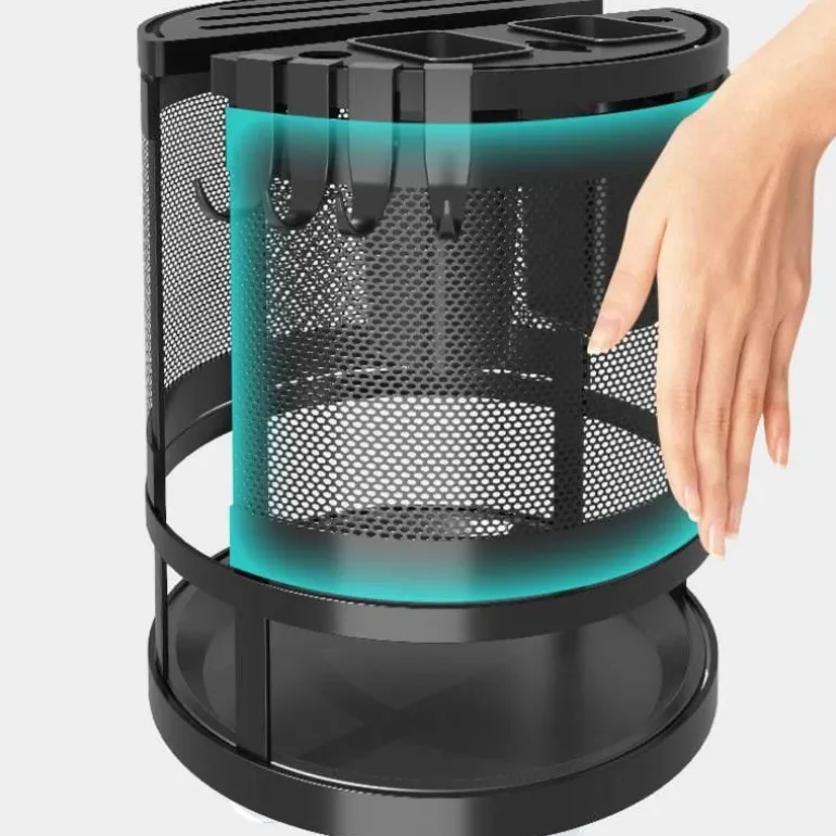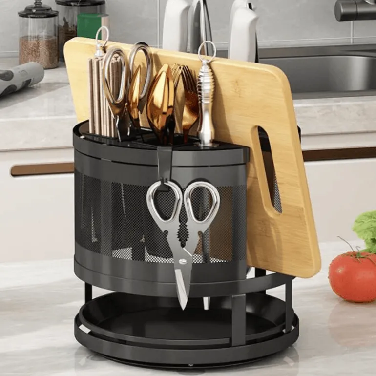 Diese Aufbewahrungslösung aus robustem Metall ist nicht nur funktional, sondern auch für den täglichen Gebrauch konzipiert. Ihr schlankes Design passt zu jeder Kücheneinrichtung und macht sie zu einer praktischen und ästhetisch ansprechenden Ergänzung für Ihr Zuhause. Schluss mit Unordnung und Chaos – dieses drehbare Regal hält alle wichtigen Dinge griffbereit und übersichtlich.