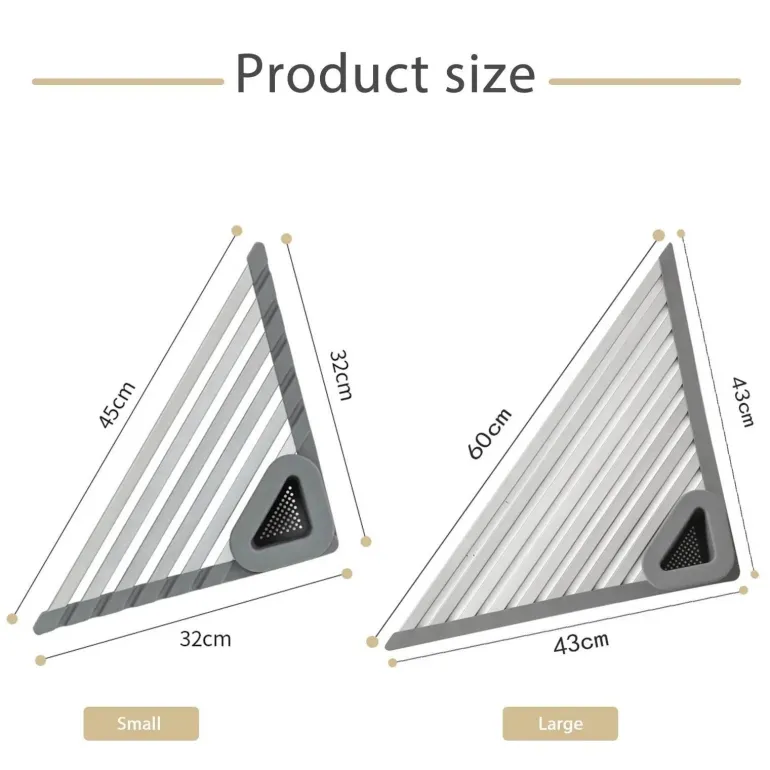 Das dreieckige Abtropfgestell für die Spüle ist die ideale Lösung für effektives Trocknen und hygienisches Abtropfen Ihres Küchengeschirrs. Hergestellt aus hochwertigen Aluminiumteilen und langlebigem Silikon verspricht dieses robuste Gestell Langlebigkeit bei gleichbleibender Funktionalität. Dank seines innovativen dreieckigen Designs passt es perfekt in jede Spüle, optimiert den Platz und bietet gleichzeitig eine vielseitige Abtropflösung für Geschirr, Obst, Gemüse, Tassen und Teller.