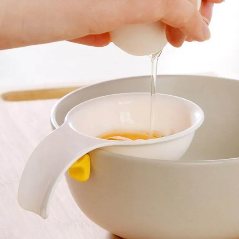 Zur Anwendung einfach geschlagene Eier in den Eiertrenner geben, leicht schütteln und beobachten, wie das Eiweiß nach unten fließt und das Eigelb zurückbleibt. Dieser transparente und sichere Eiertrenner ist ein zuverlässiger Helfer für Ihre kulinarischen Bedürfnisse.